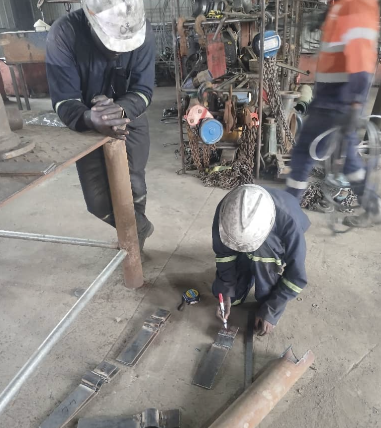 Installation of an attrition feed pump, including fabrication of support structures, accurate positioning, and alignment. The pump was successfully integrated into the existing processing system to ensure efficient material handling.